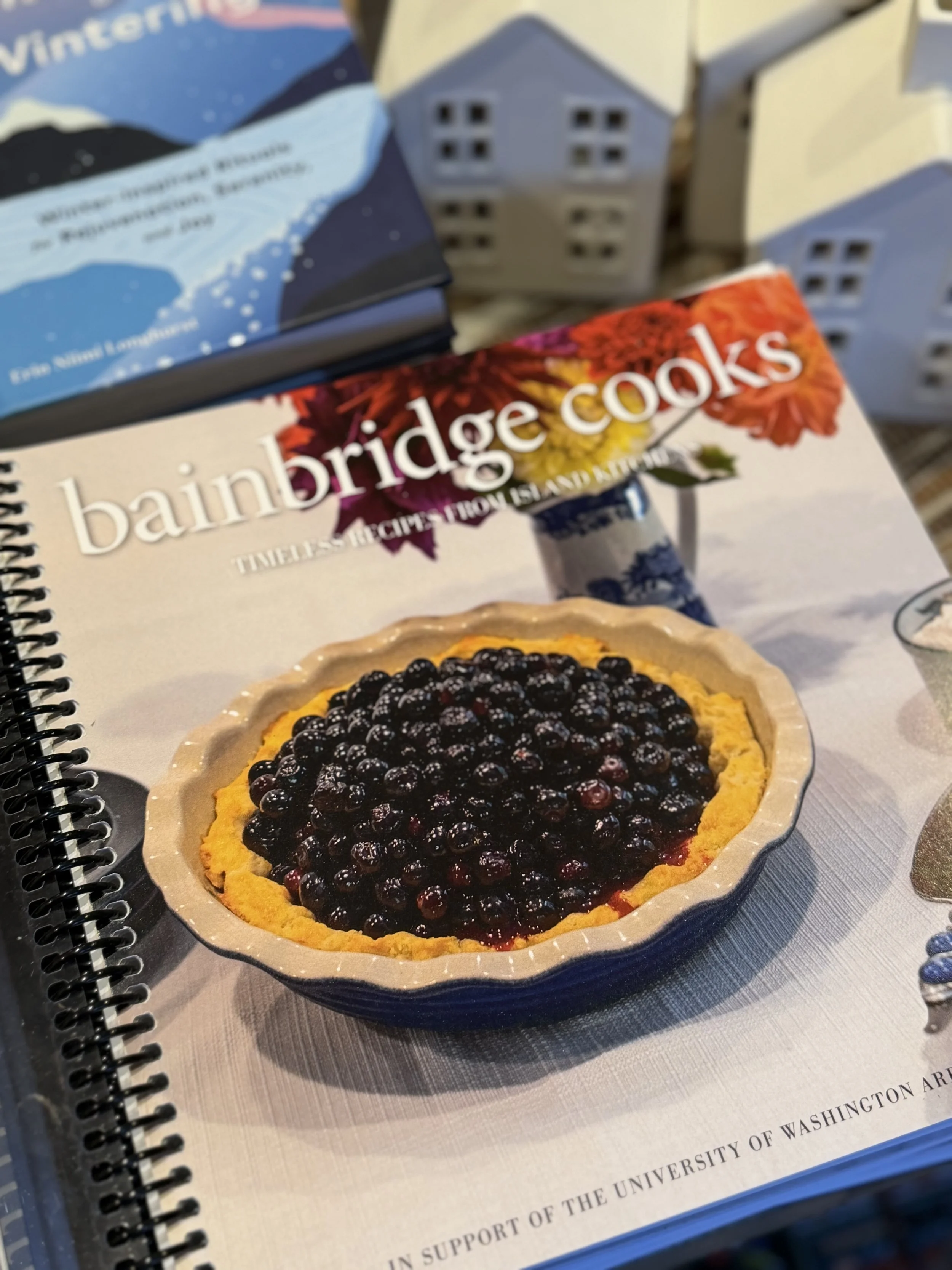PLUM: We are located in a unique tucked away spot on the Plum deck along with our wonderful shop neighbor, Brian Hansen of Bainbridge Gold, Silver & Jewelry, however, we realize we don’t get as much of the foot traffic because we are set back from the main street. We try to draw folks up the deck with our Wing Wall (painted during the pandemic) and our ever-changing seasonal deck light displays. Right now it’s white lanterns and snowflakes for the holiday season. In January and February, it will be pink lanterns as a nod to Chinese New Year and cherry blossoms.